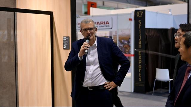 2019年法兰克福展会上,圣戈班采购总裁布里斯亲临理想展位并作发言