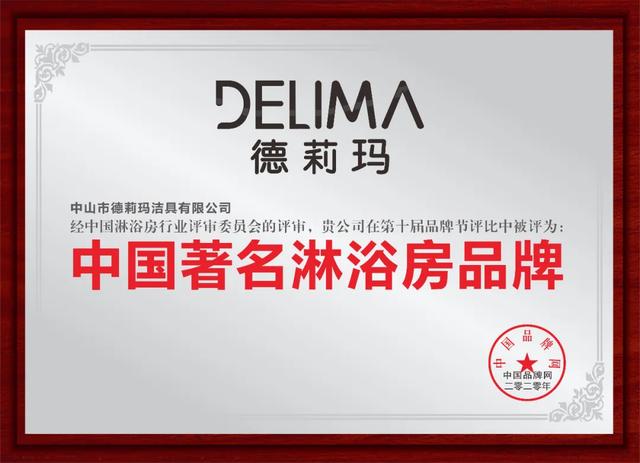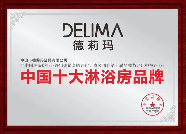 德莉玛作为“淋浴房协会副会长单位”,德莉玛表现卓越,屡获殊荣,荣获“广东省守合同重信用企业”“淋浴房行业标准起草人之一”“淋浴房生产基地发起人之一”“CCTV展播品牌”“中国十大淋浴房品牌”“中国著名淋浴房品牌”等诸多荣誉。
