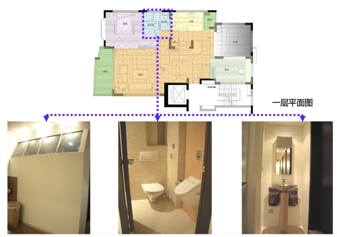 家居生活不意味着只能坐与躺,健康和娱乐也是必然需要的。二楼主卧中设计了1米乘1米的两个空间,左边是淋浴间,右边是干蒸桑拿房。