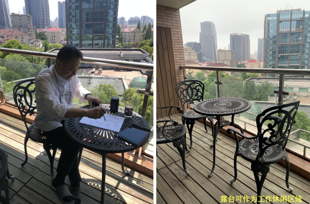 疫情期间,由于减少户外活动,于是他就把阳台也变成了工作区域,既然享受户外的阳光与景观,又能在闲暇时间喝咖啡泡茶,非常惬意。