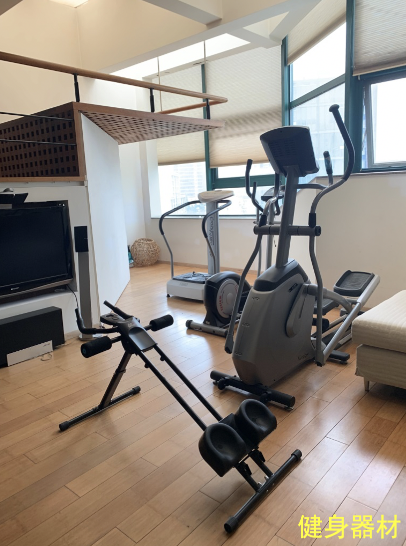 同时,二楼也有很多健身器材,为无法户外跑步时,提供健身的机会。