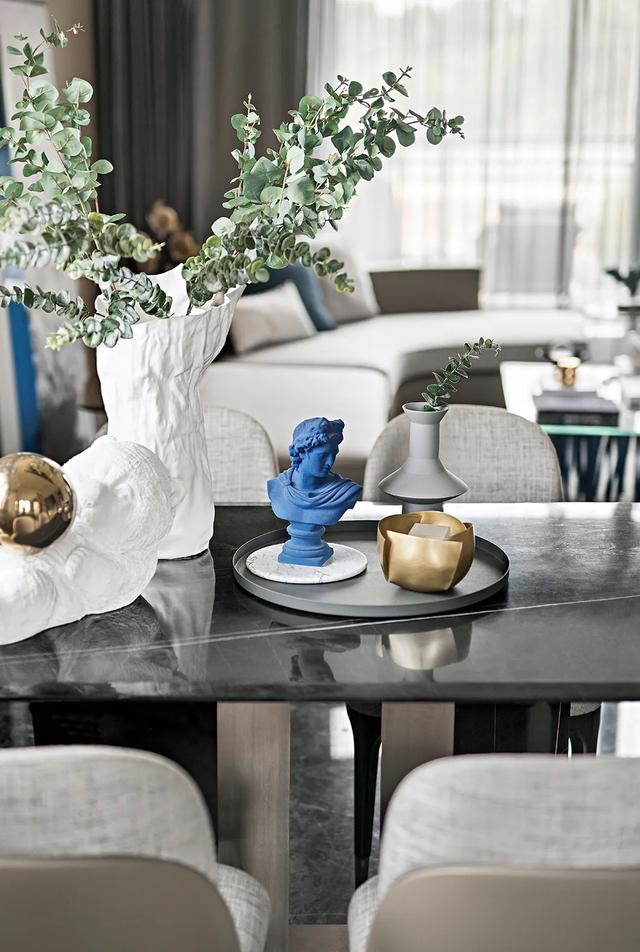 隐含自然肌理的摆件点缀其间,让人的精神与空间艺术氛围缓缓流动了起来。