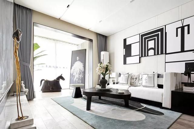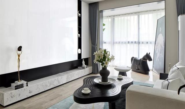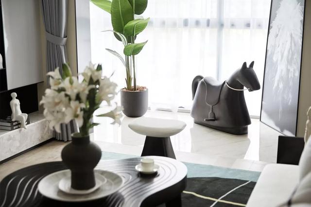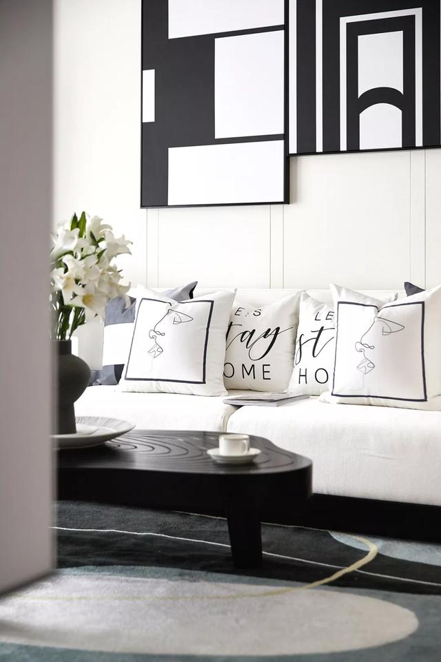 在黑白的客厅内饰里,艺术化的表达是重点。我们不拘于传统的陈设方式,随性的饰品摆放,自然舒适的空间情景,空间内流动的利落线条,以及富有情趣的物件点缀,营造生活的自由与纯粹。