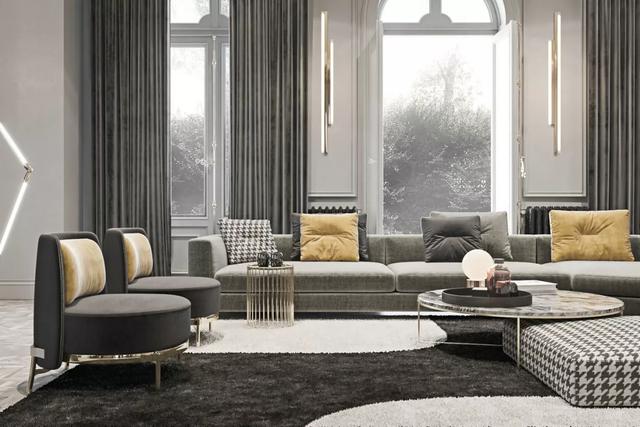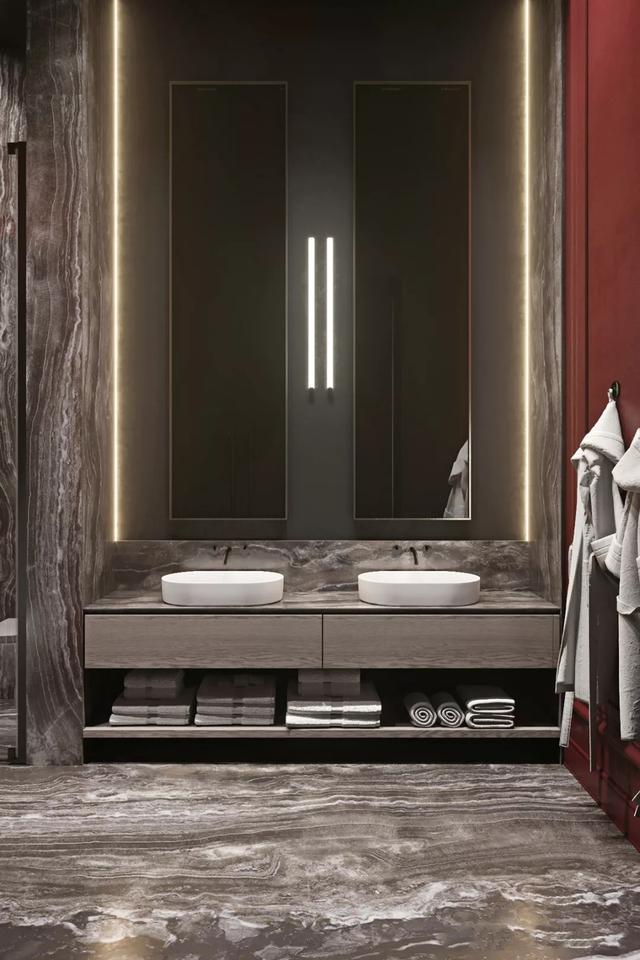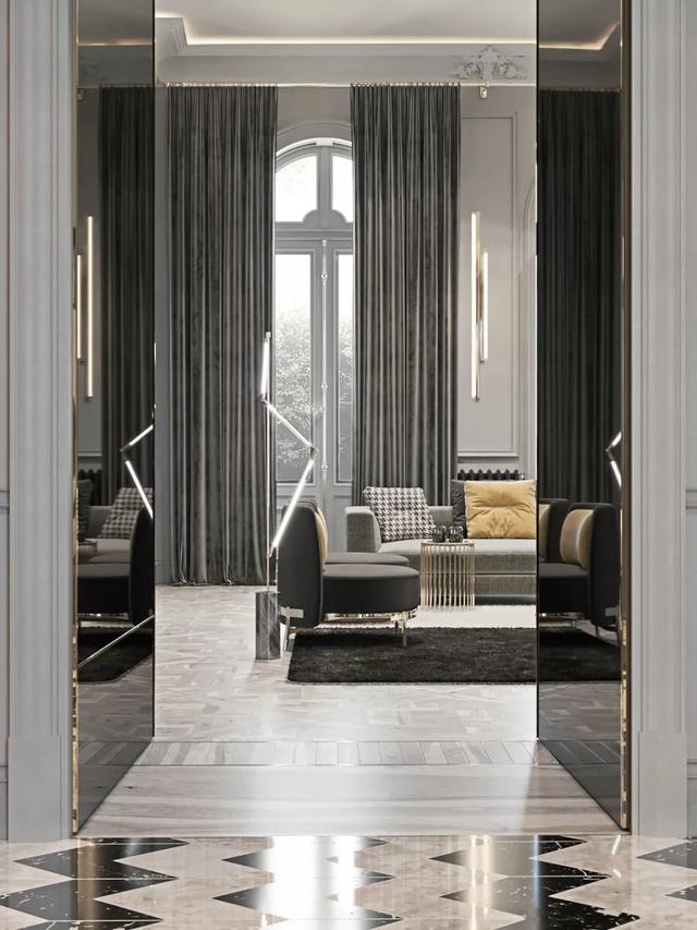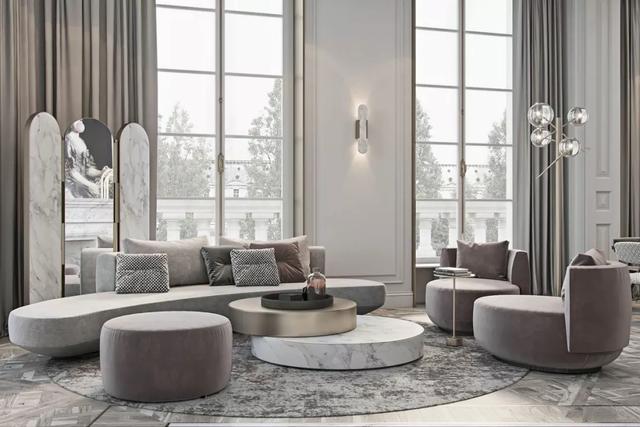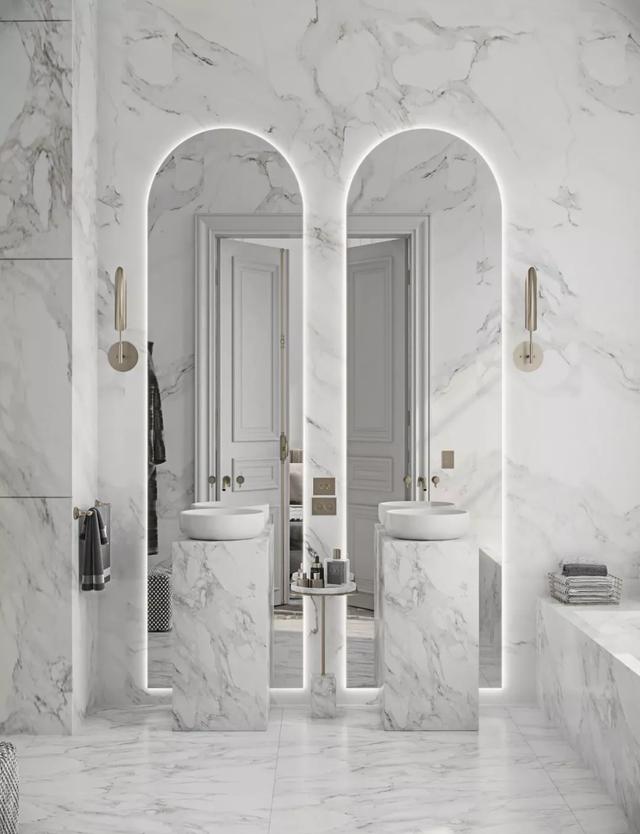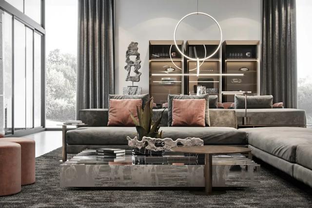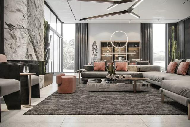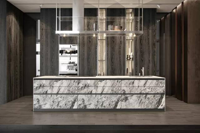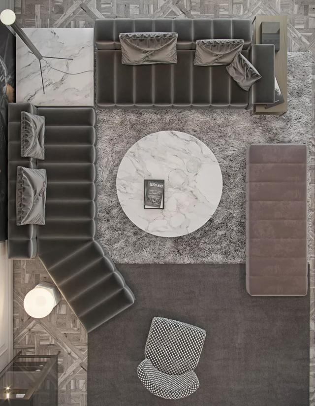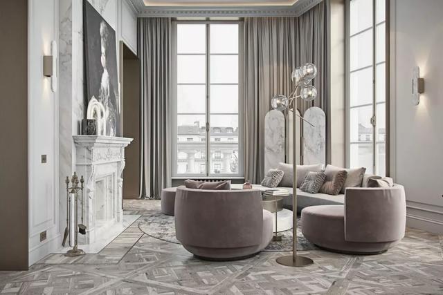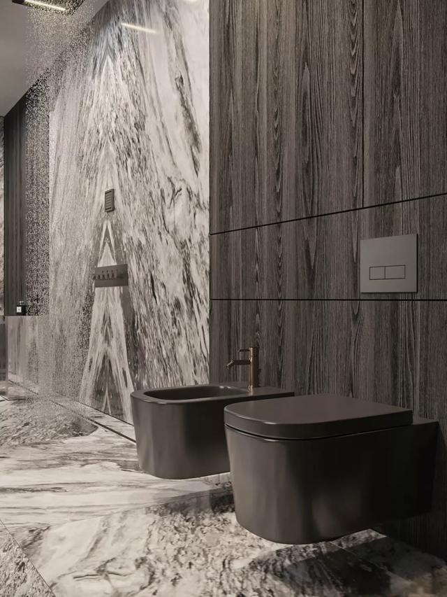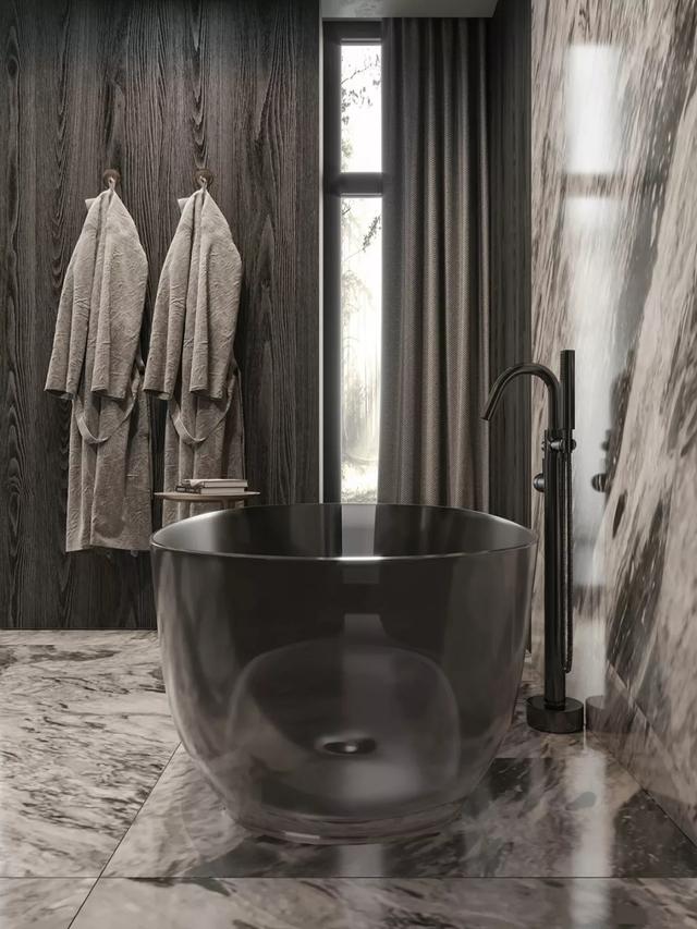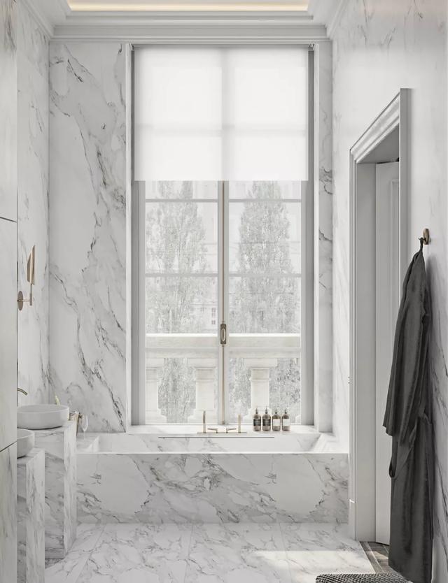 整体色调以低饱和色调为主,在采用天然大理石的搭配上,不会显得沉闷,反而能够给人一种低调的奢华。