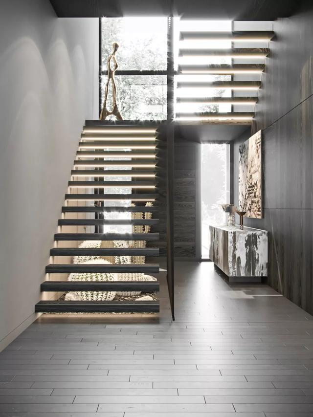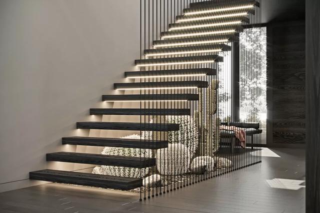 楼梯下方的仙人球小景是整个空间的亮点,优雅奢华中带来一丝自然时尚气质,彰显着主人浪漫主义情怀。