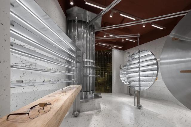 设计的核心集中在局部,一种螺旋扩散的非对称性环形结构。这种结构的植入迫使周边与它被动重组成各种形态迥异的空间,使它的多样性超出规模的预设,以丰富的空间体验向人们诠释品牌内核。新的秩序存在于局部,与体验行为共存,试图向人们展示一种在进程中的状态。而这一概念也是由空间限制导出的构想,场地的弊病是两个入口的位置,动线会将空间被生硬切分,因此我们在中间植入这个螺旋环形结构,很好地消解了切分并强调了人在场所中的共存感。
