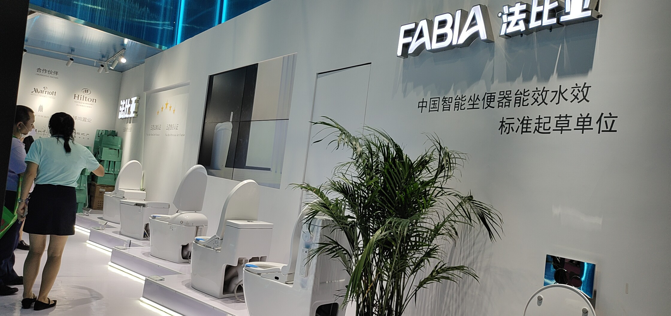 从现场的参观人群来看,到法比亚展位上的观众也是以酒店客户居多,设计师相对不是特别多。他希望,能将法比亚的无菌水疗马桶,提供给更多的酒店公司,从而让酒店用户得到更加健康的体验。