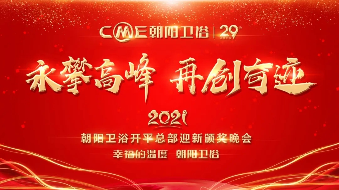 2021年1月16日,永攀高峰·再创奇迹2021年朝阳卫浴开平总部迎新颁奖晚会盛情绽放。董事长叶国荣先生、副总经理邓书宇先生、行政财务总监邹继礼先生、营销总监张厚全先生、生产总监李双泉先生、营销副总监陈鑫先生以及朝阳全体同仁和董事长家属共同出席本次晚会。