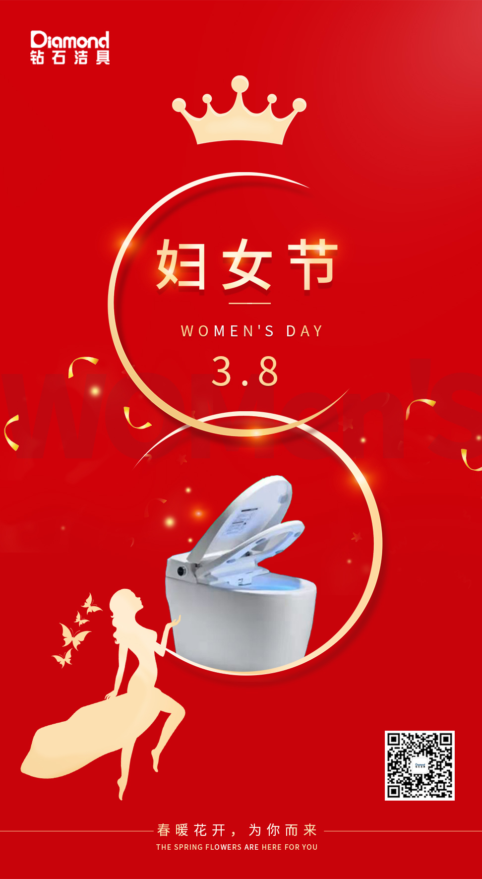 3月8日,女神节将至,关爱女性健康,从现在做起!钻石智能马桶,送给她和家人一份温馨与健康!