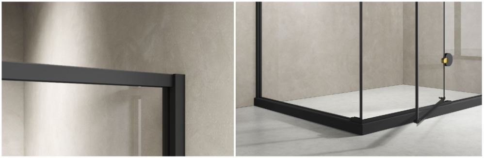 贝利系列淋浴房突破了传统五金结构的构思,在方圆之中相互融合,包容天地;黑+金的色彩搭配简易而不媚俗,彰显出深沉大气的底蕴。