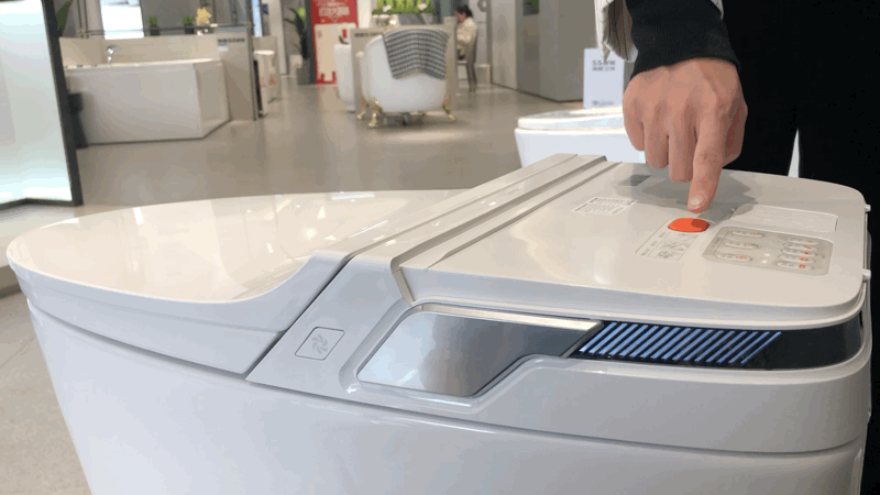 走到空间展示区,终于见到传说中的“超跑款”智能马桶——脉霸S12,一眼看过去,就被流畅的线条吸引住了,洁白光滑表面,显出干净利落的气质。