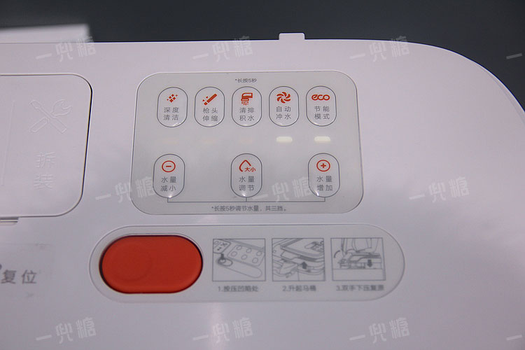 还有一些不常用的功能健,则放在后盖隐藏式的面板。毕竟坐在马桶上,是够不着后边的。只有需要清洁等功能,才需要拆除后盖操作。