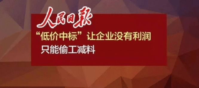 《人民日报》曾两次发文诟病“最低价中标”,实为罕见!建设工程质量因“最低价中标”问题频发,使得整个行业怨声载道,也在给业内人士敲响警钟:“最低价中标”原则一天不变,行业就很难有什么工匠精神,更不要说什么中国品牌!”