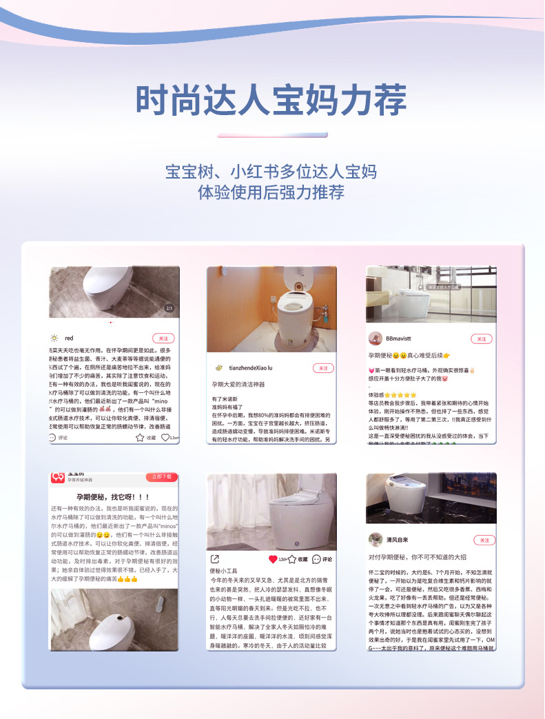 加上“寒冬助热”“入座感应”“座圈加热”“脚踢控制”“净水过滤”“紫外线杀菌”“喷杆清洁”“感应夜灯”“个性化记忆”等功能,米诺斯“轻水疗”马桶对准妈妈的呵护可谓不余遗力。