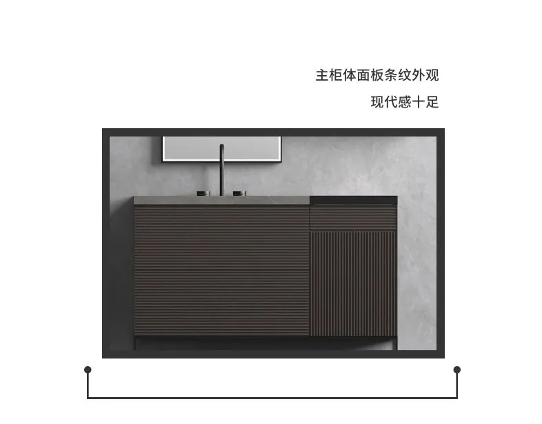 主柜体与岩板台面的颜色,与摩天大楼相似。主柜体面板,配有现代感十足的条纹外观,打破了以往产品平面的传统印象,用立体感体现出匠心。