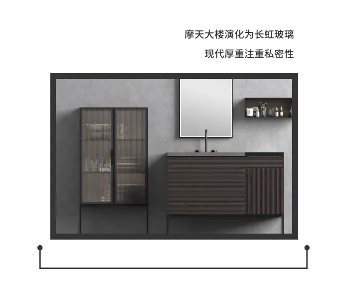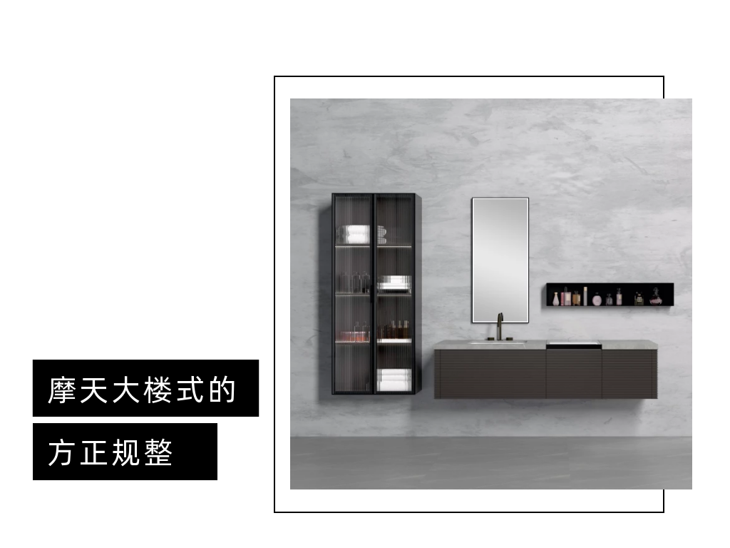 产品设计取材于曼哈顿城市的特点,无论是柜体,镜子还是储物格,都像摩天大楼一样方正规整的样式。