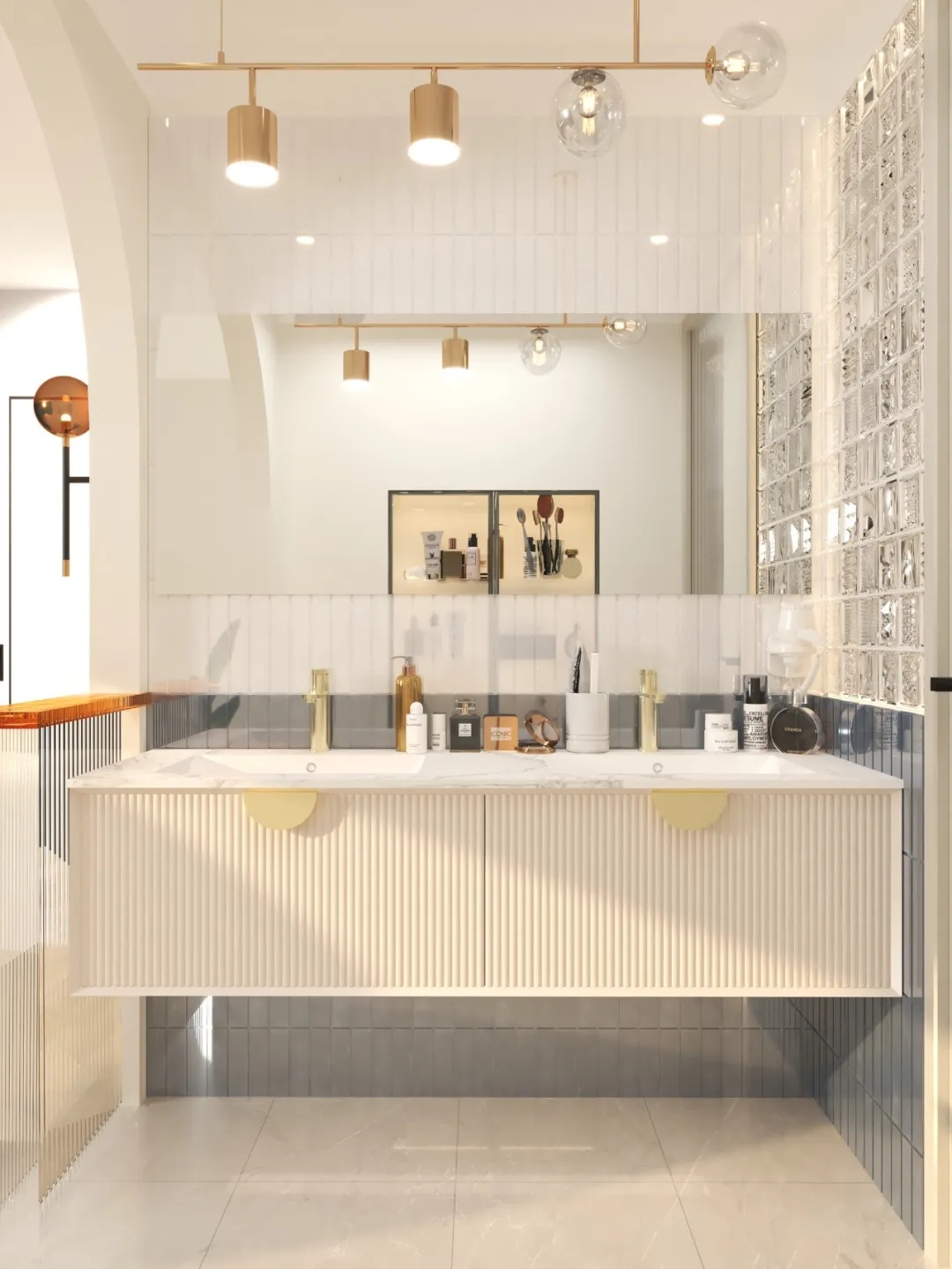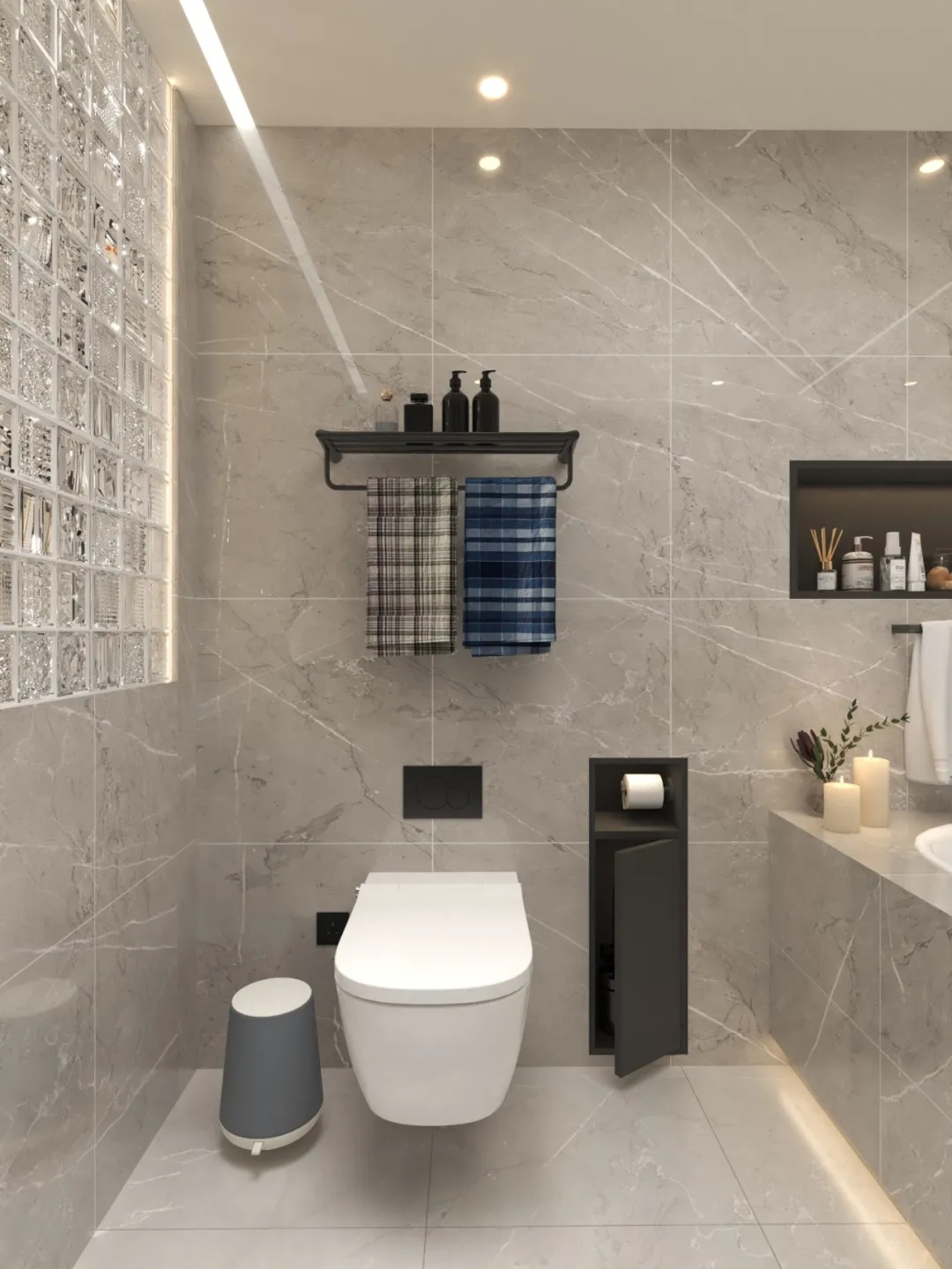 在布局紧凑的卫生间中,同时满足收纳储存问题和开阔的视觉效果是一个比较棘手的问题。