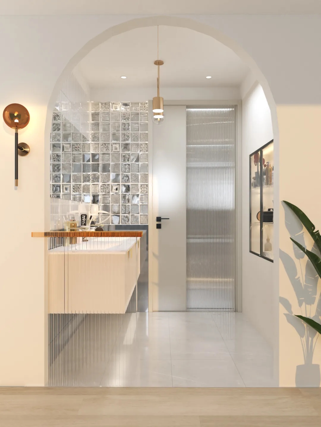卫生间面积不大,但是毛巾、牙刷牙杯等日用品,要收纳的物品却不少。墙面壁龛设计,就是非常节省空间的一种收纳方法。壁龛利用嵌入式设计增加收纳空间,湿区的壁龛可以摆放一些洗发水、沐浴露,干区的壁龛可以摆放毛巾、纸巾等。