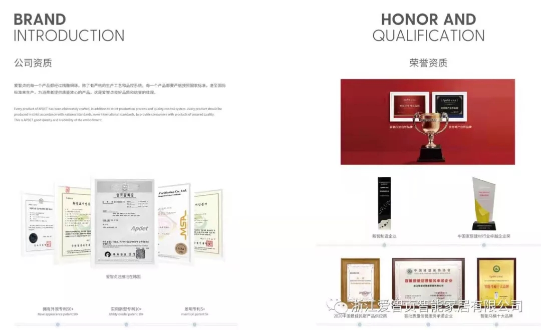 浙江爱智贞智能家居有限公司,是中国建材流通协会理事单位、陶瓷制造委员会轮值主席单位。是国家高新技术企业,智能坐便器协会标准、医用推拉式自动门行业标准起草单位之一,全国智能家居协会副理事长单位。