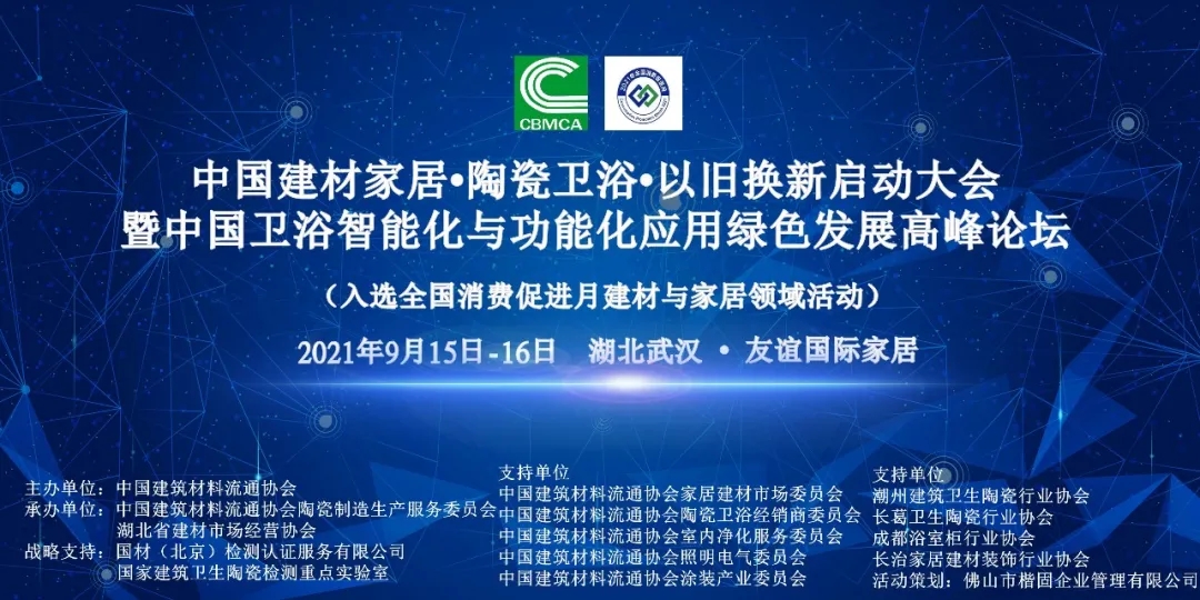 “2021全国消费促进月活动之中国建材家居陶瓷卫浴以旧换新启动大会暨中国卫浴智能化与功能化应用绿色发展高峰论坛“活动,多位政府领导、协会领导、部委专家、行业专家、建筑采购专家、武汉及周边地区建材家居商场、头部经销商代表等将于9月15日-16日齐聚湖北武汉,就行业的关注热点进行深度探讨、对接洽谈促共赢。9月15日-16日,爱智贞与您相约江城,共襄盛会,共话行业发展新趋势!
