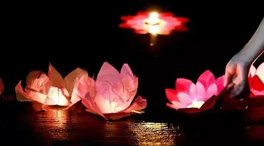 放河灯是中元节的传统习俗,放河灯既可以寄托人们对先人的思念,还意味着可以将厄运随着逝水东流,一去不返。河灯也叫“荷花灯”,一般是在底座上放灯盏或蜡烛。中元夜把河灯放在江河湖海之中,任其漂泛。