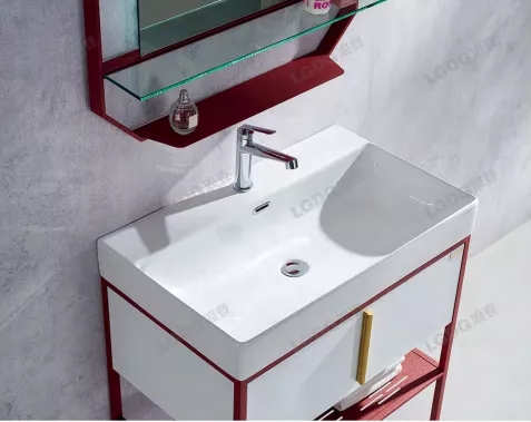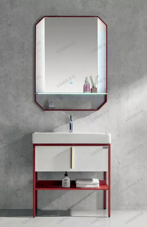 浪登洁具|珠光白拼红棉纹不锈钢浴室柜