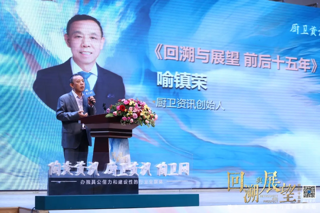 中国工业合作协会家居整装分会会长、厨卫资讯社长喻镇荣代表主办方率先发表《回溯与展望 前后十五年》主题演讲,他表示15年来卫浴行业的发展历程可以用团结进步,正道经营八个字来概括。由于卫浴行业的特征,团结交流是发展进步的必要条件和有效手段。其次,正道经营是永续经营的必由之路,正道经营就是科学经营,它不仅要服务满意、员工满意、客户满意、社会满意,还要最高程度的提高劳动生产率。最后他表示,厨卫资讯的命运和行业的命运息息相关,行业的命运和国家的命运,全球的命运联在一起,希望我们卫浴企业能够做精、做久、做强。