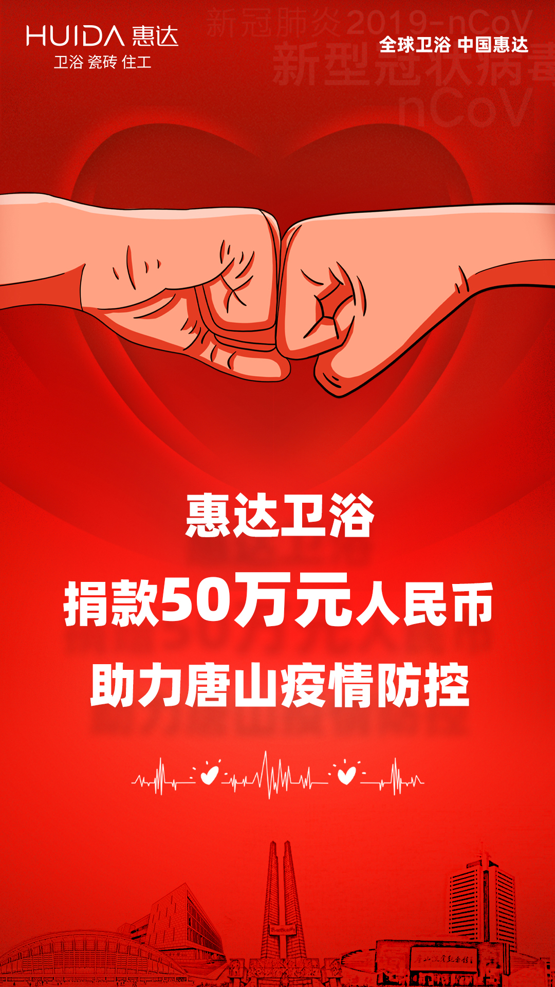 河北唐山:惠达卫浴捐款50万元人民币,助力疫情防控