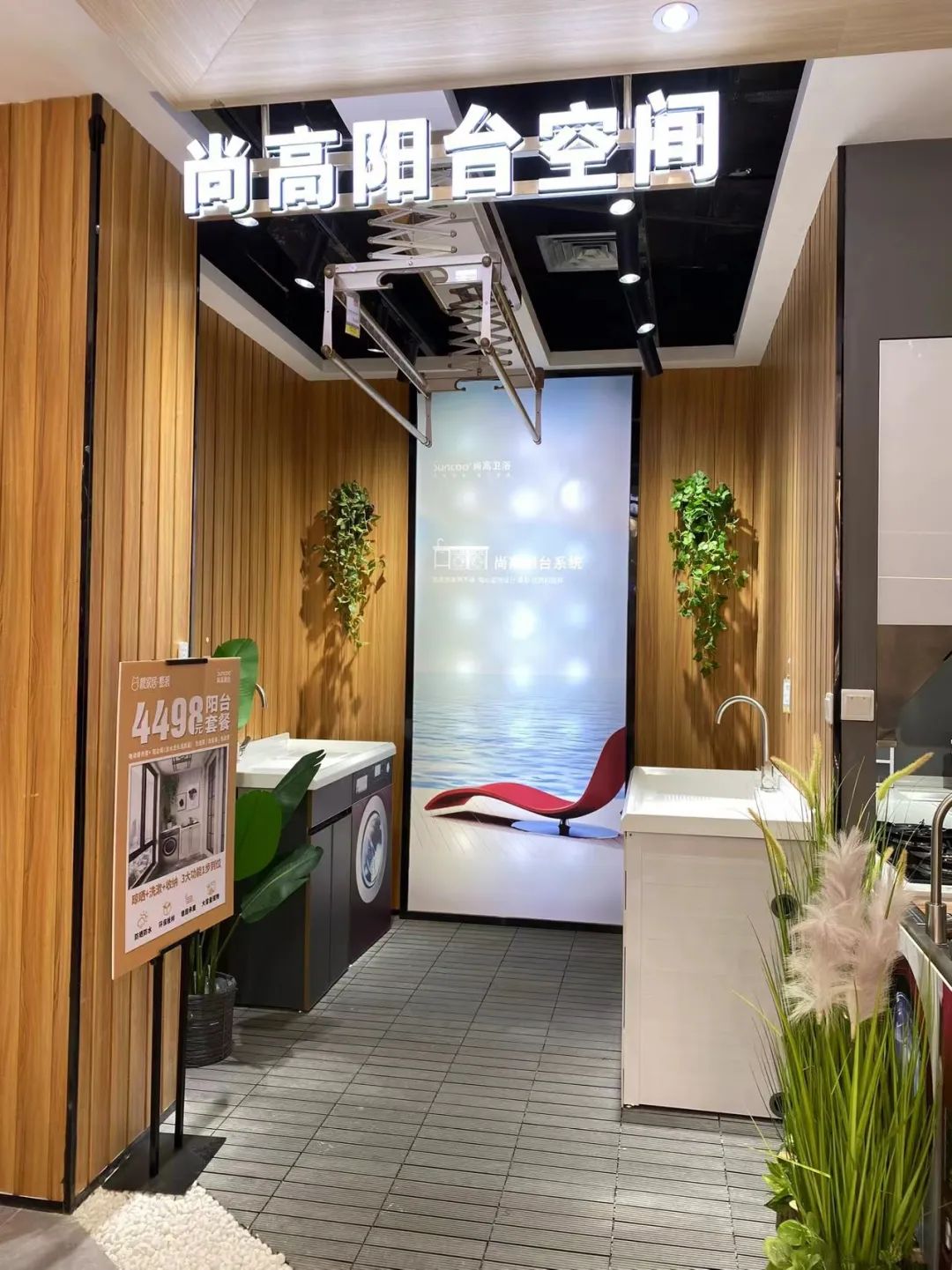 尚高阳台空间则作为年轻人局部改造的重点单独打造,囊括了阳台柜以及智能晾衣架及其他阳台相关建材。疫情时代,年轻人更加追求宅家舒适体验,作为宅家人唯一的户外活动空间,时代赋予了阳台更多含义,尚高也有义务将阳台空间更加精致、细分呈现给用户。