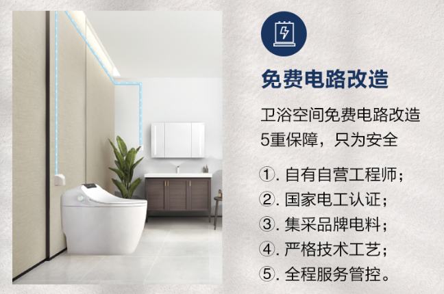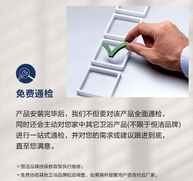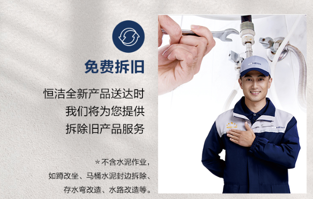 恒洁提供恒洁智能马桶2小时快速换装服务,从旧品拆除到智能换新,升级品质生活仅需2小时。(2小时:指上门服务到产品安装完成,不含电路改造时间;更多产品换装升级,请咨询恒洁服务团队。)