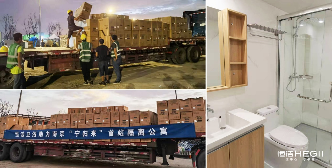 在南京“宁归来”首站公寓应急工程项目中,恒洁集团南京运营中心展现出强大的对接与交付能力。在收到需求后五天之内,恒洁南京团队即完成包括马桶、花洒、龙头等700多套卫浴产品的交付工作,在恒洁品质被点赞的同时,恒洁服务团队的“三快(送样快、送货快、售后快)”也得到“宁归来”项目方的高度肯定。