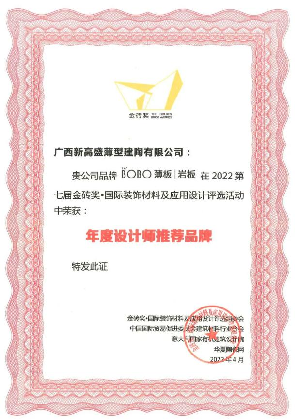 4月19日下午,由金砖奖组委会主办的“第七届金砖奖颁奖盛典”圆满结束, 惠达卫浴旗下品牌LA’BOBO凭借独具美学视角的品牌竞争优势荣获“2022年度设计师推荐品牌”殊荣。