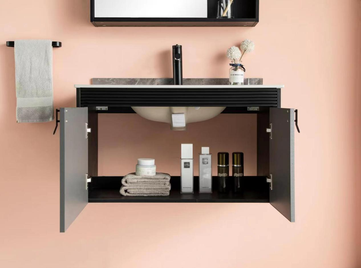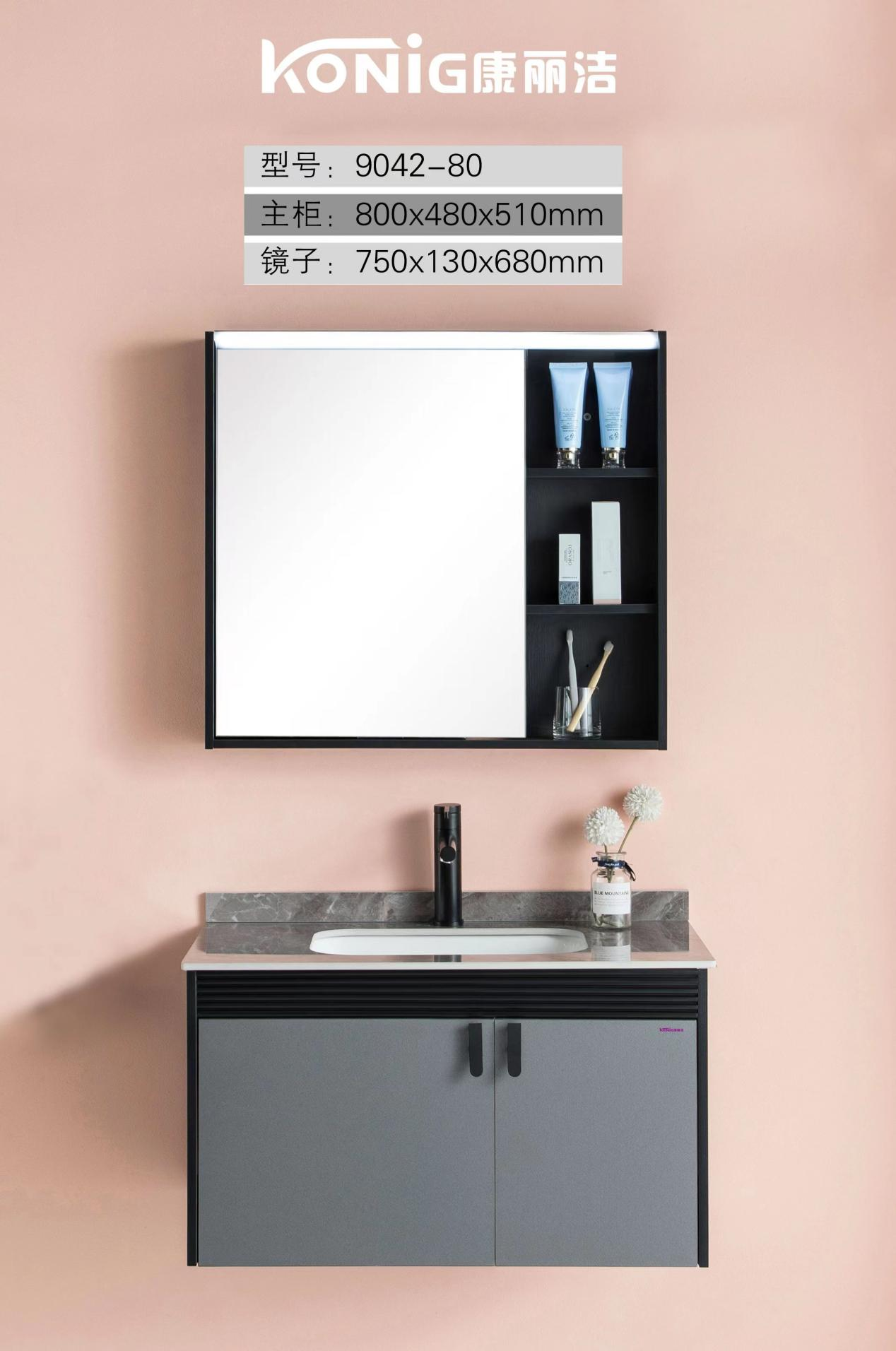 康丽洁9042-80浴室柜,在产品外观设计上,装饰更少,线条更加的洗练流畅,用金属元素进行点缀,兼顾美感与实用。在色彩选择上,康丽洁9042-80浴室柜,采用了博尼斯灰,营造出轻奢品质感。