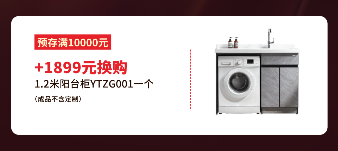 欧派卫浴阳台柜YTZG001,适配市面99%的滚筒洗衣机,可达到完美嵌入柜内的效果;左置物台,右台盆,置物洗衣两不误。此外,还有加设搓衣板,方便日常快速手洗小件衣物~活动期间,预存满10000元,+1899元即可抢购1.2米阳台柜YTZG001一个(成品不含定制)。