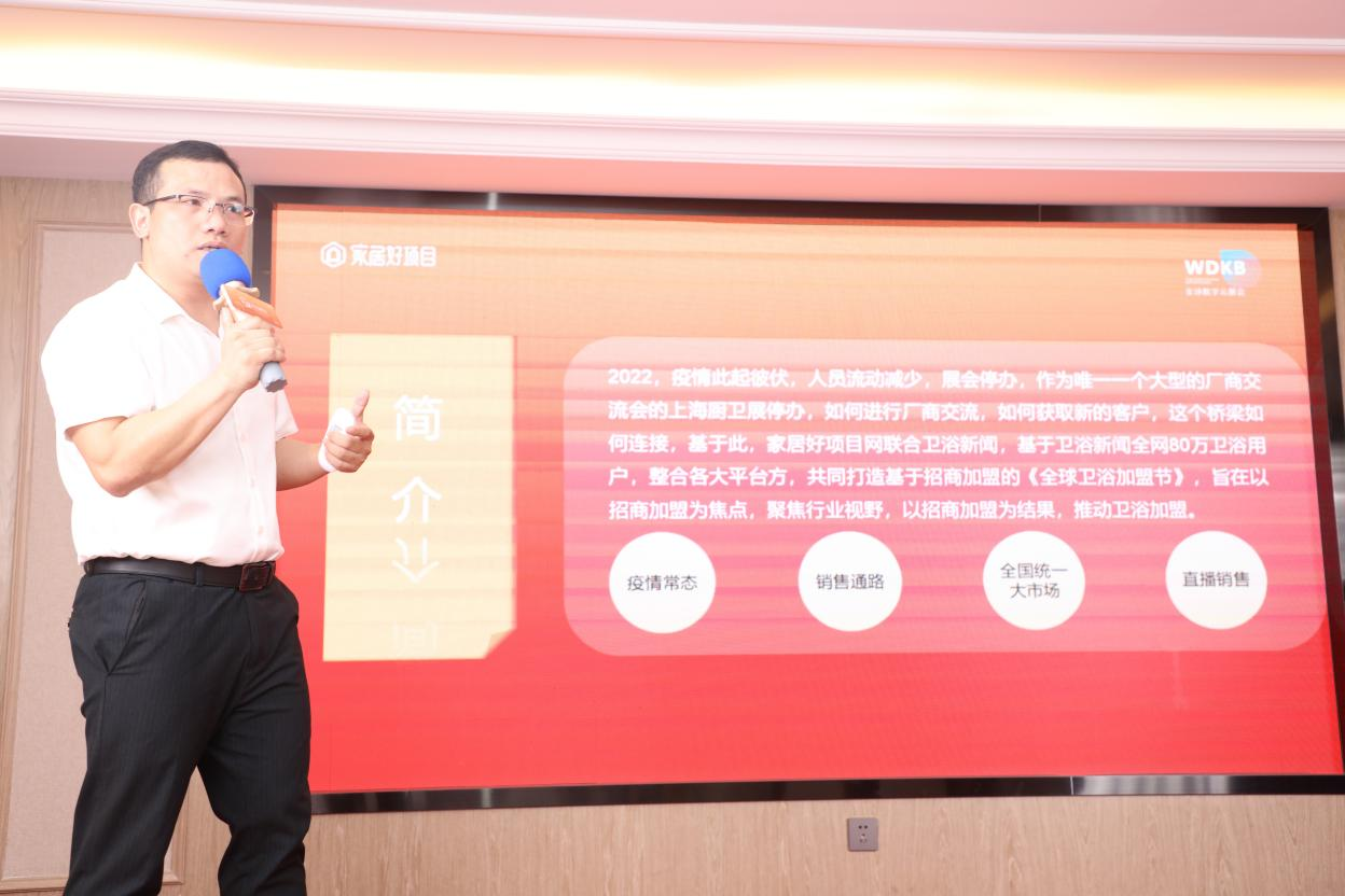 2022 年,疫情不断在各地爆发,导致正常的商业流动减少,展会停办。而对于卫浴企业来说,每年的“重头戏”——上海厨卫展也因为上海地区的疫情而停办。在如此艰难的大环境下,企业怎么获取新的客户,厂商间如何进行交流,是各家厂商都十分关注的问题。针对这个问题,阅度控股总经理、卫浴新闻创始人高声伟先生在发布会现场给在场的品牌代表们发表了主题演讲。