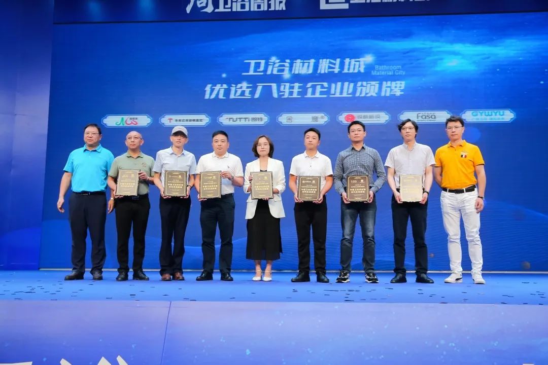 有更多优质的卫浴供应链企业进驻,输送给卫浴企业。现场为法萨、图特、朗生、万邦照明等卫浴材料城优选入驻商户颁牌。