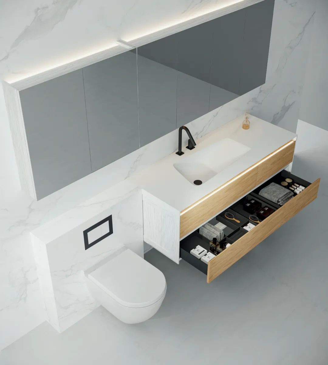 通过浴室柜/柱盆-浴缸-镜柜等配套定制