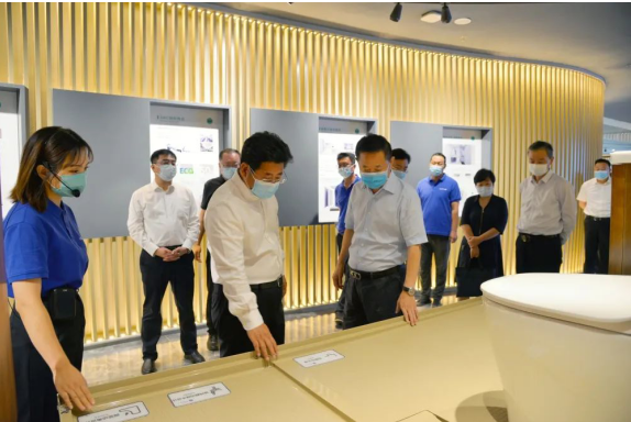 9月6日上午,河北省生态环境厅党组书记、厅长李晋宇一行在唐山市政府副市长郝志军、丰南区长霍强陪同下到惠达卫浴总部调研指导,董事长王彦庆陪同参观了卫浴体验馆、惠达卫陶博物馆及4#生产线,并介绍了公司生产、运营等相关情况。