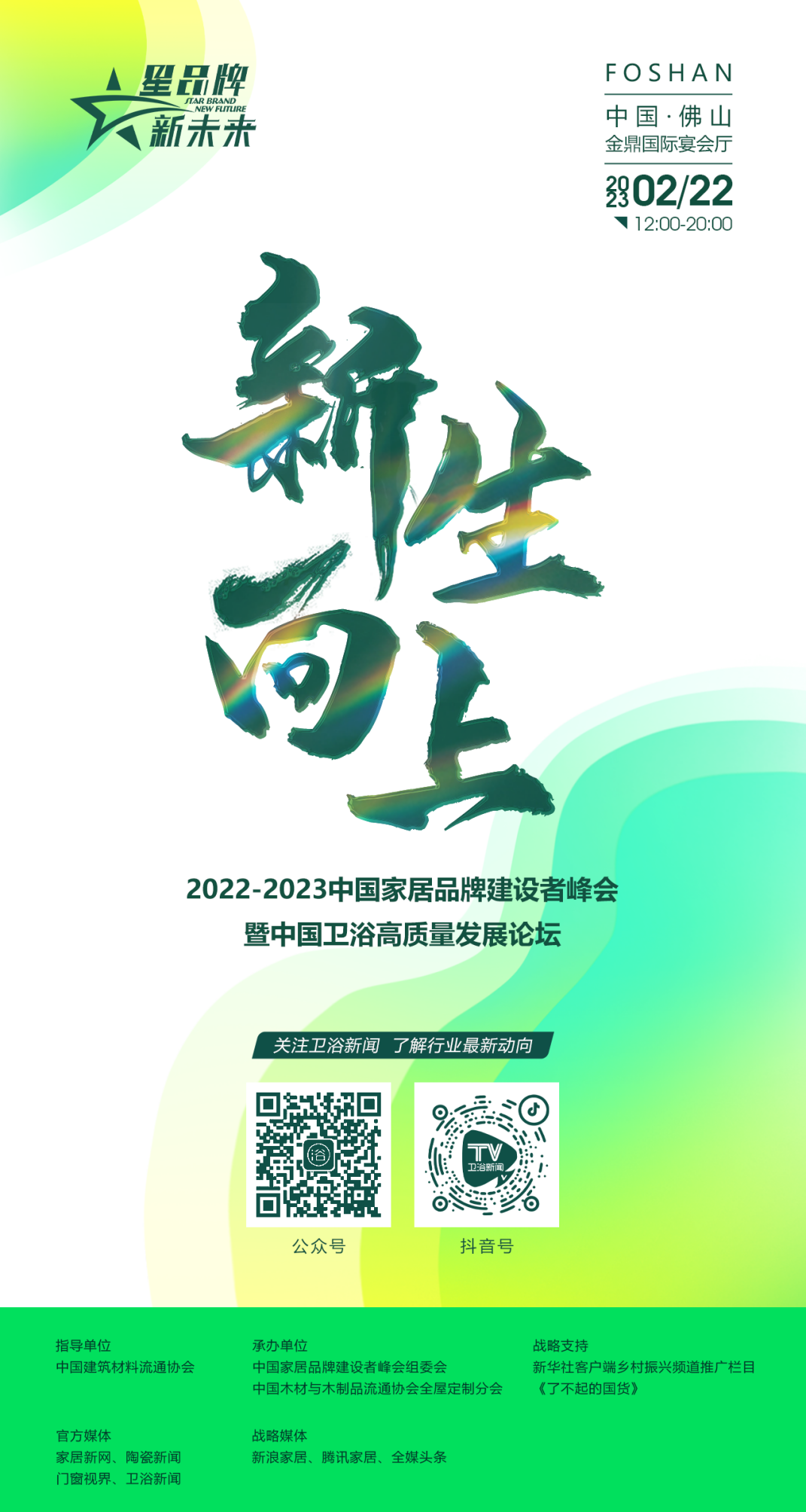 中国家居品牌建设者峰会暨星品牌·新未来卫浴行业跨年盛典,历经5年发展已成为卫浴行业规模最大、影响力最高的峰会。2月22日,聚焦卫浴行业新风向,共商产业发展新趋势,第五届中国家居品牌建设者峰会暨品牌高质量发展论坛即将再次起航,续写中国卫浴品牌的华美篇章。