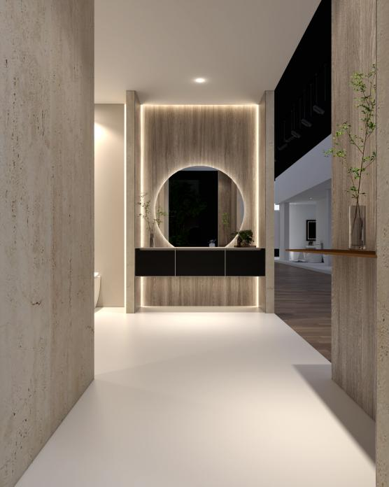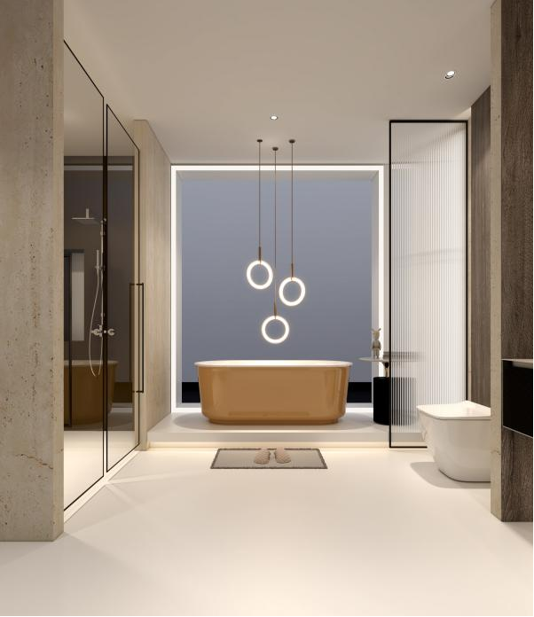 第一个是套间区,包括安缦、安岚、安雲、安穆四大套间,每个套间采用的色彩元素都不一样,展现出来的设计理念和生活态度也不一样,是对埃飞灵整体卫浴空间理念和品牌未来走向的一次精彩呈现。