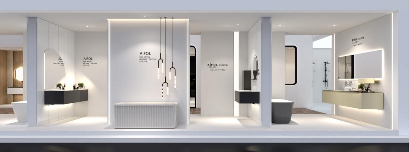 第二个是精品区,主要针对开集合店的高端客户。现在有很多客户不会只代理一个品牌,谁浴缸做得好就代理谁的浴缸,谁浴室柜做得好再代理谁的浴室柜。针对这类客户,埃飞灵以精品区的形式,着重展示浴缸、浴室柜、马桶这三大核心产品的长期优势。