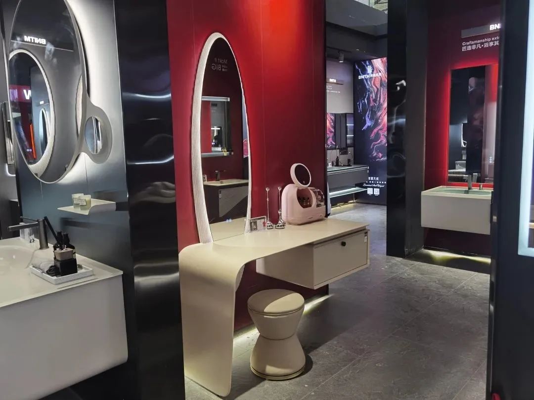 展会上,邦妮拓美重点布局并呈现了不锈钢卫浴的健康工艺与强大的产品阵容,从浴室柜单品到整体一站式全卫空间的打造,再到卫浴细分功能场景的全新升级,始终围绕未来需求前沿的健康、科技、环保、美学等,深刻的展示了不锈钢卫浴的硬核之处,打通健康品质卫浴与家庭使用场景的闭环,让消费者真实融入艺术美学与健康品味兼具的沉浸式品味体验。