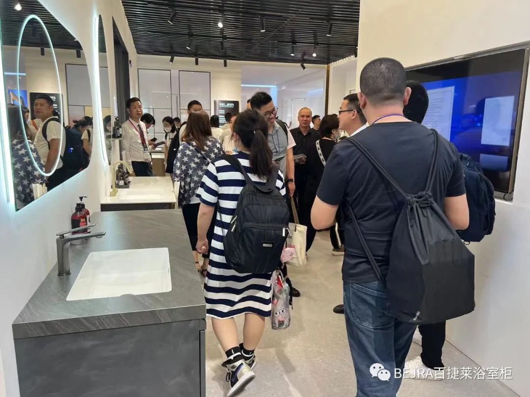 这些产品,在工艺、配置、功能上都做了很大升级,无论颜值、品质还是舒适度都非常出众,因此吸引了大量观众。很多观众都滞留在BEJRA百捷莱的展位上,对产品反复观摩,以致展厅内摩肩擦踵。尤其在几款热门产品处,更是挤满了人。