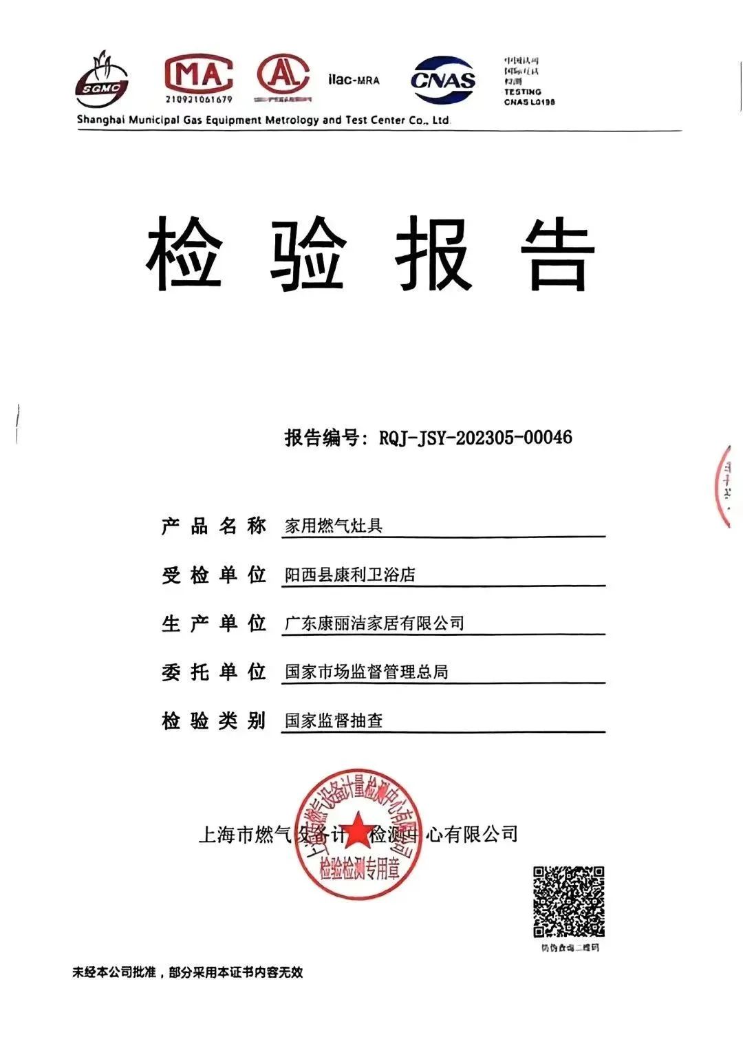 硬核通过|康丽洁燃气灶具经国家产品质量监督抽查合格