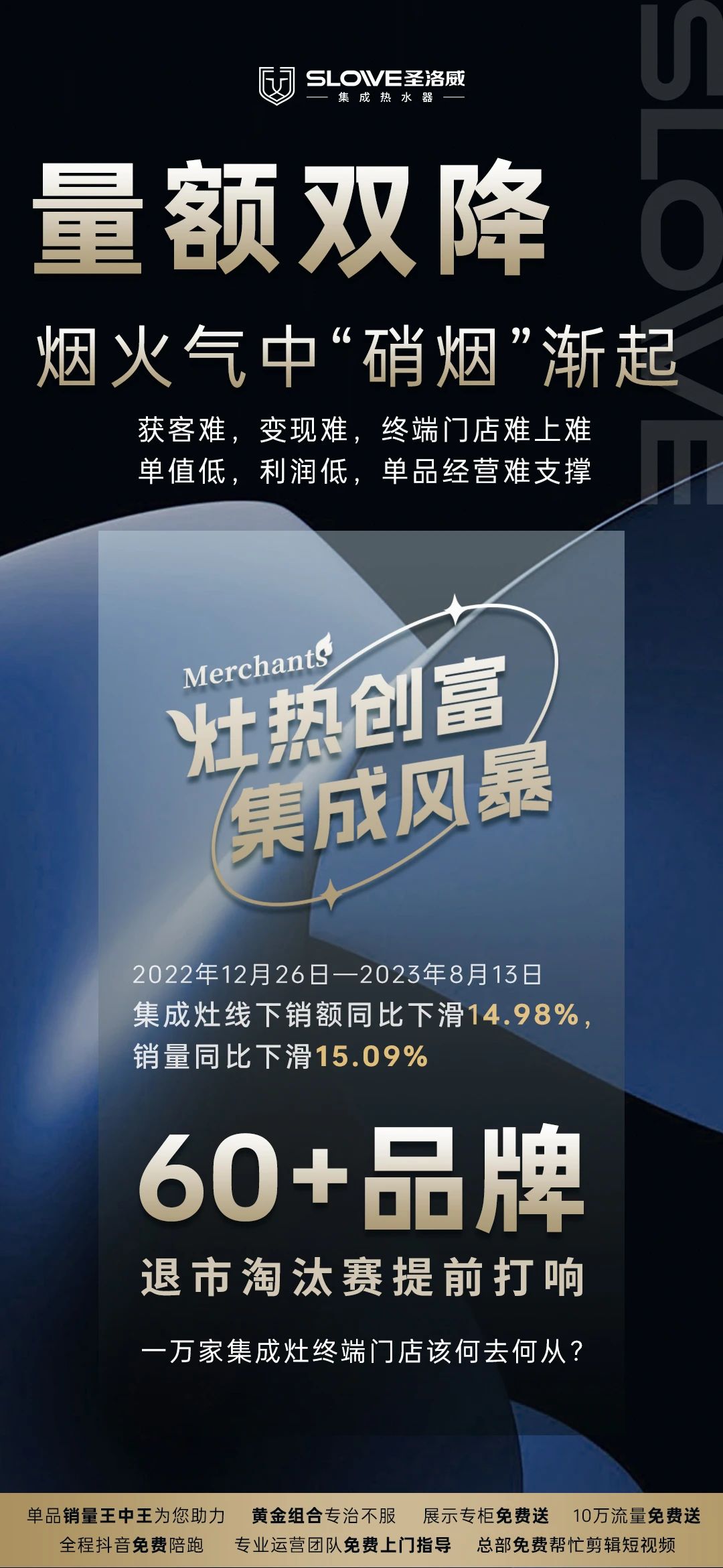 随着消费升级,单品类赛道内卷严重。市场不缺乏好的产品,但是疫情管控开放以来,集成灶线下门店销额同比下滑14.98%,销量同比下滑15.09%,60+品牌退市。造成这个现象的根本原因在于单品内卷,产品单值低、利润低;随着电商发展终端获客难、变现难。终端市场淘汰赛已经打响!