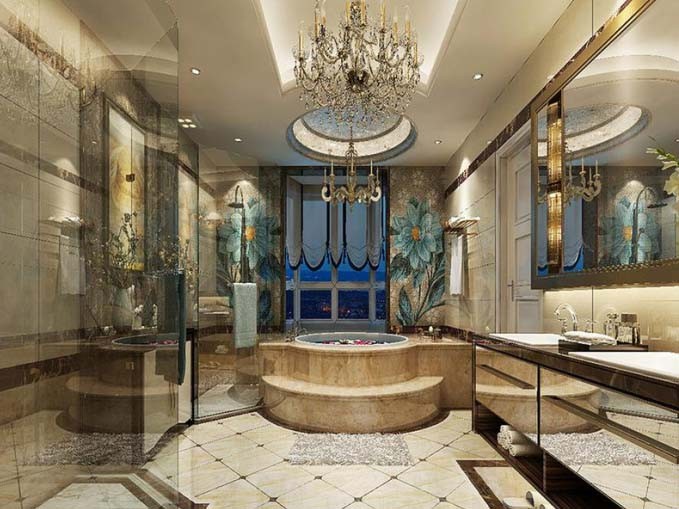 在宽大的卫浴间里,干湿自然分离,良好的物理环境使得浴室柜有着充裕的容身之处。设计师可以根据使用者的功能要求和审美需求来放置不同形式的浴室柜,各种洗浴用品、清洁用品以及衣物等分门别类地置放。另外,还可以根据家庭成员来分类,使每个人都有独立的储物空间,让使用者更方便、卫生。