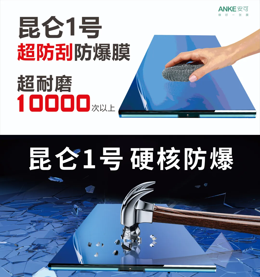 针对产品维度,安可集团拥有丰富的产品线,为淋浴房产品的设计创新和性能升级做出更多的创新性尝试和探索。其推出的昆仑1号超防刮防爆膜,具有10000以上次的耐磨性,将防爆性能提升到新的高度,安全感十足。