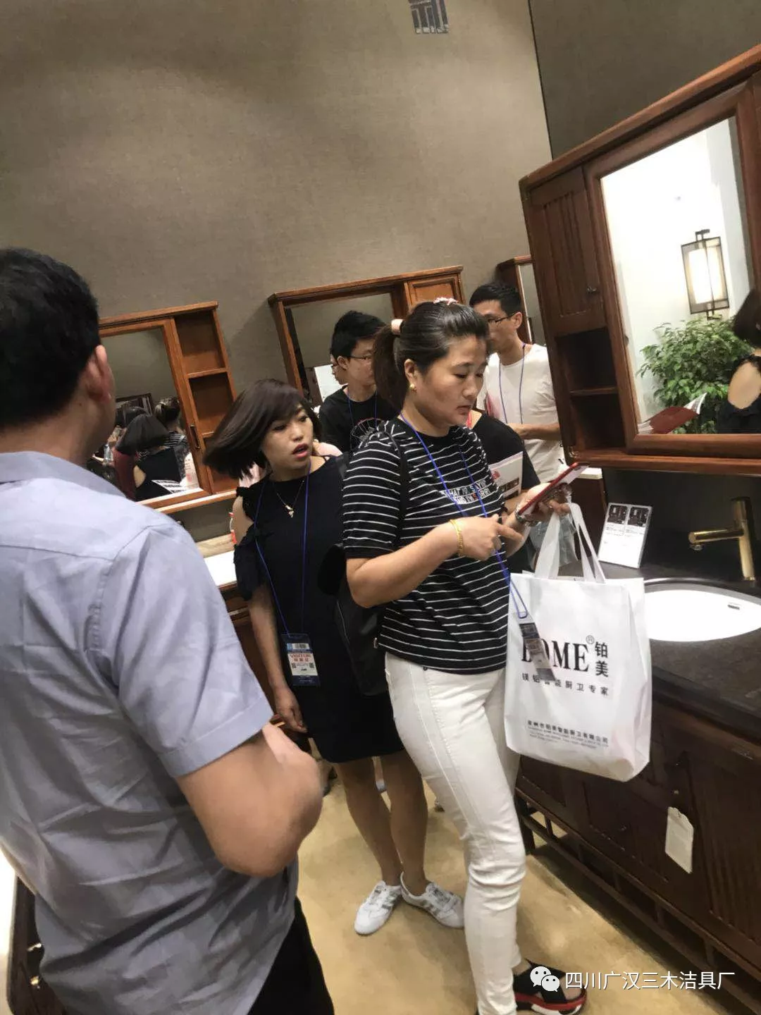 今年的上海厨卫展,三木和府也派了强大的精英团队,在展会的现场,可以看到工作人员忙碌的身影,他们耐心的为前来参观的人讲解三木和府浴室柜的产品亮点,或者为经销商们解读三木和府的招商政策。