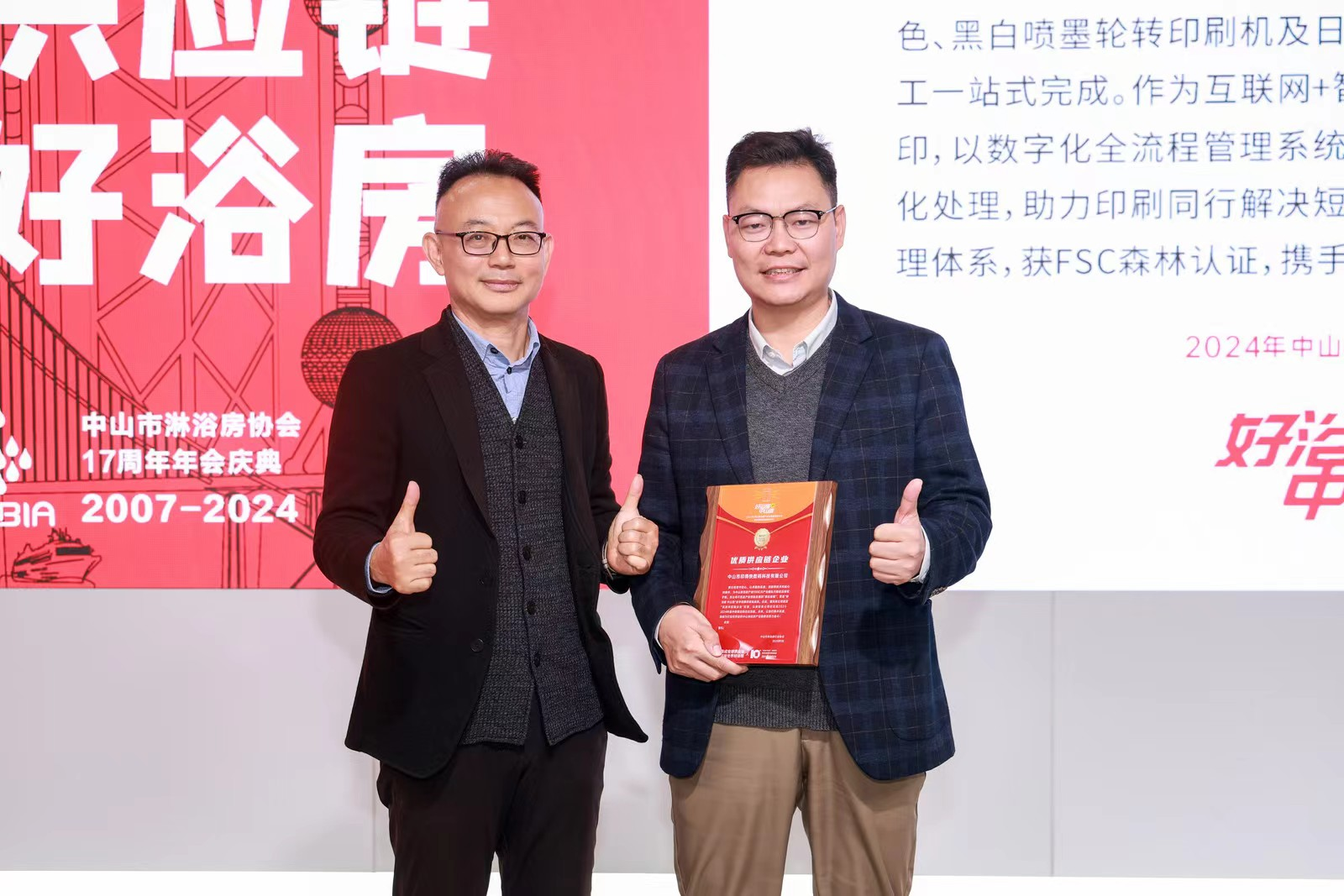 大会现场,中山淋浴房行业协会对新增理事、会员进行授牌,同时也对优秀供应链企业颁发了荣誉证书,肯定了供应链企业为推动淋浴房行业发展作出的贡献,同时也号召中山淋浴房行业产业链协同创新,构建更为良性的创新环境。