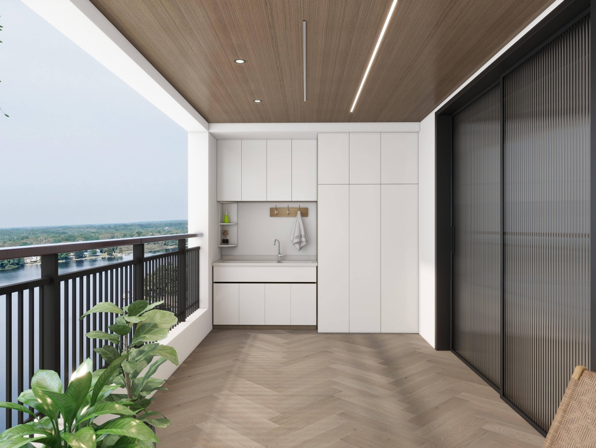同时,大晟阳台采用模块化设计,可灵活组合柜体,如洗衣柜、储物柜、收纳柜、鞋柜、洗手台、功能性阳台、实用性阳台等,完美 嵌入洗衣机、烘干机等电器产品,搭配隐形排水槽、伸缩晾衣杆等,大大提升空间利用率。